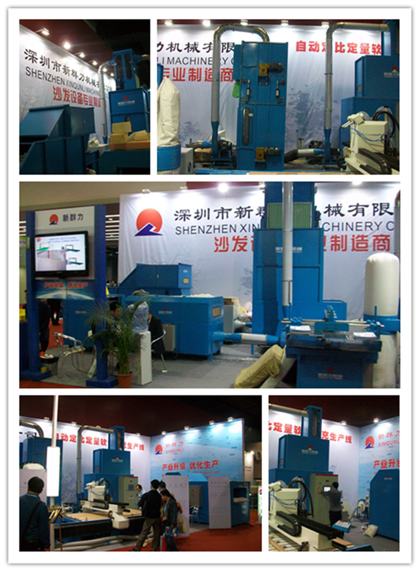 在展會中,我(wǒ)司展出了最新(xin)推出的裁闆機(ji)、全自動🐅大批量(liang)枕頭(抱枕)生産(chǎn)線、重新改良的(de)ESF001D坐墊填充機🤟以(yǐ)及ESF007-3帶有三把刀(dāo)的海綿切粒機(jī)。吸引了來至國(guo)内外衆多客戶(hu)前來參觀。